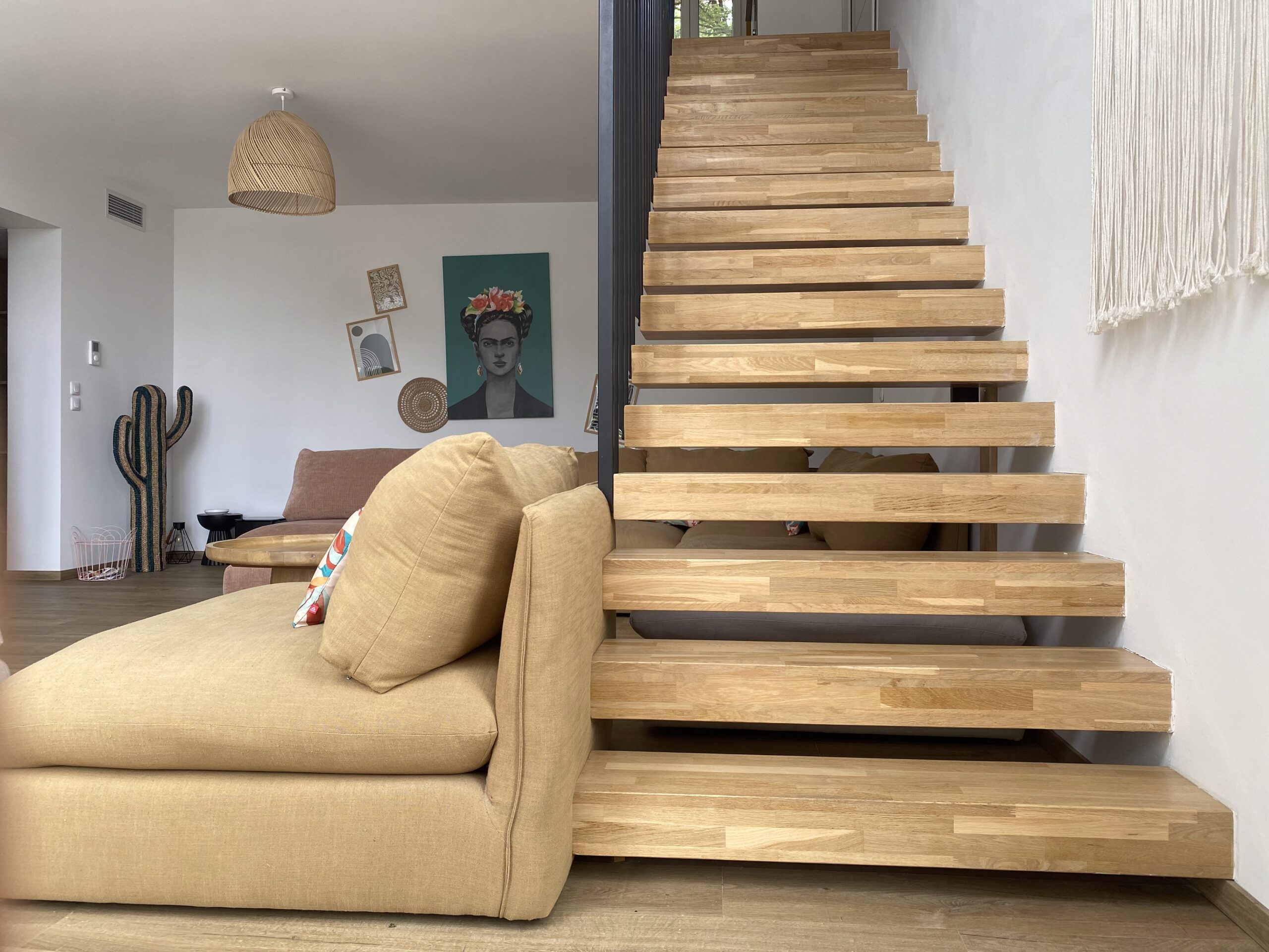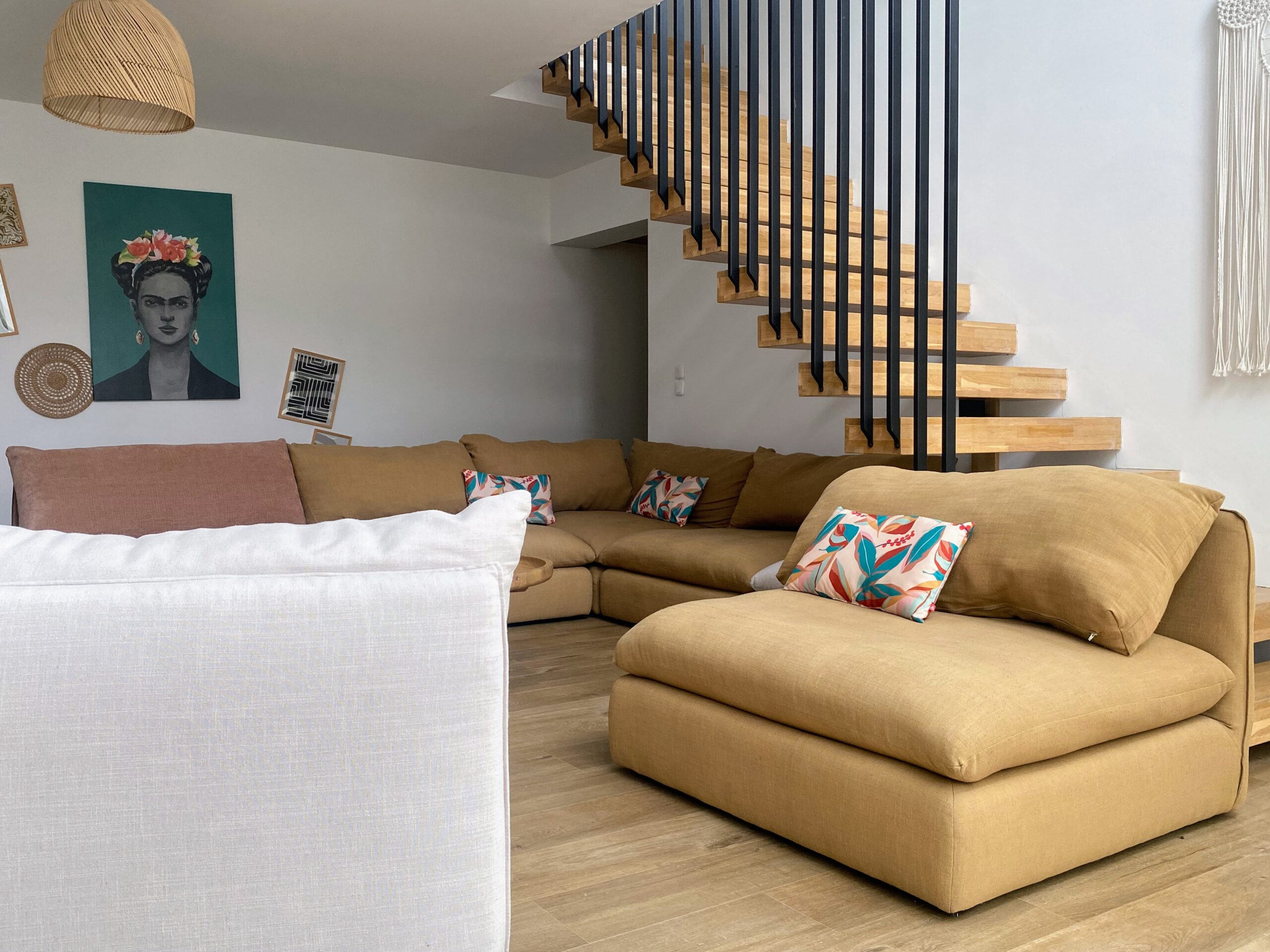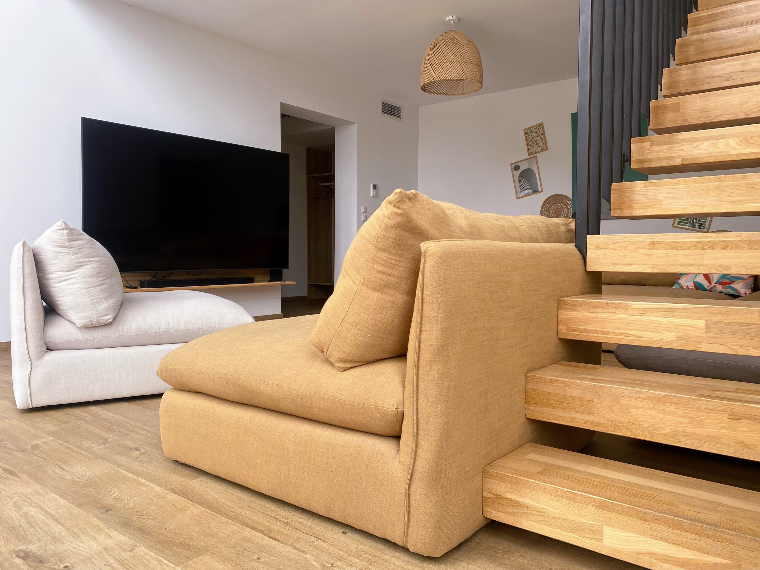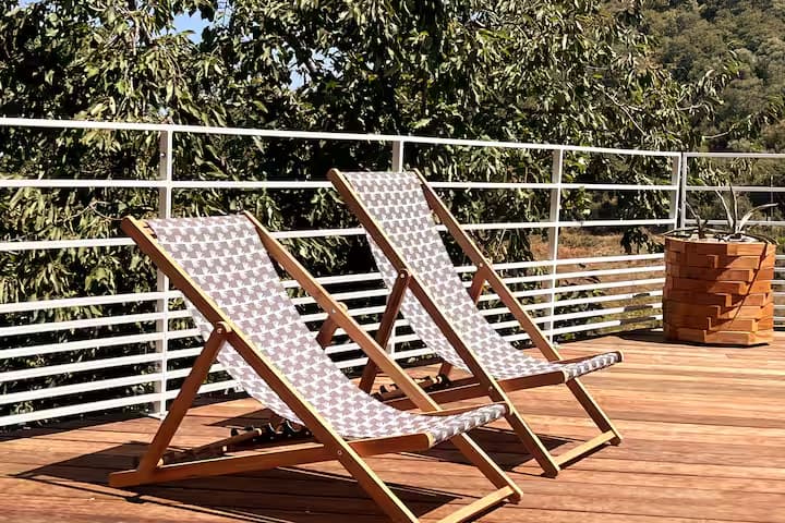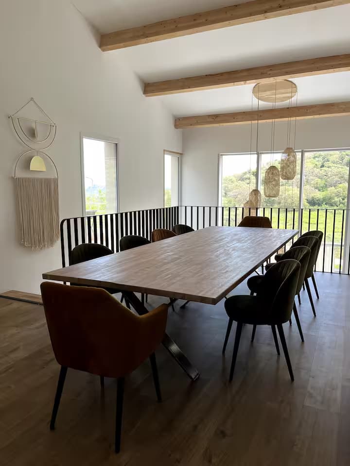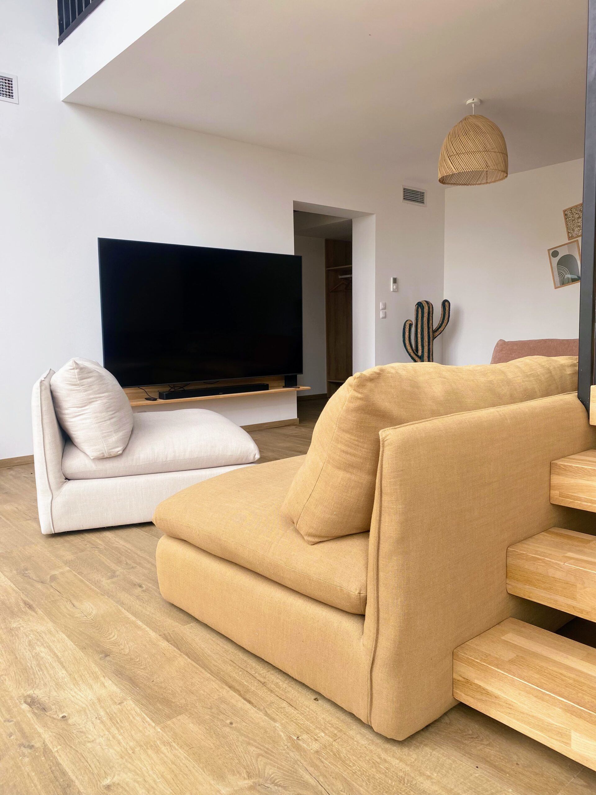 Chaque chambre de la villa a sa propre personnalité, mais toutes partagent le même confort : lit 160×200, TV 59″, grand dressing, rideaux obscurcissants et une vue apaisante sur la montagne. Les 3 chambres suivantes ont un accès direct à la terrasse et à la piscine, tandis que la suite parentale se distingue avec son balcon privatif, sa salle de douche attenante et son espace généreux. La décoration, sobre et naturelle, est relevée de touches colorées qui créent une ambiance douce et élégante, propice à la détente.
