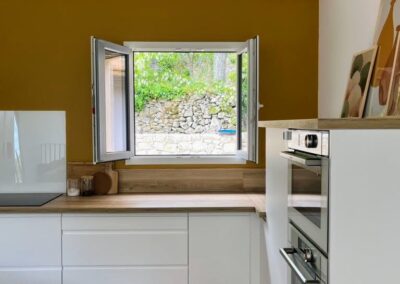 La cuisine, les salles de douches et toutes les chambres sont équipées de stores moustiquaires extérieurs, pour profiter de la fraîcheur nocturne sans laisser entrer les insectes volants ou pollens. Confort et tranquillité assurés, même en plein été.